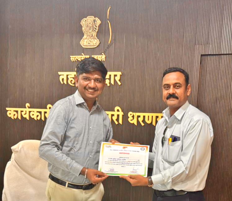 राष्ट्रीय मतदार दिनाचे औचित्य साधत जळगाव ग्रामीण विधानसभा मतदारसंघाचे मतदार नोंदणी अधिकारी निवृत्ती गायकवाड, तहसिलदार महेंद्र सूर्यवंशी यांच्या मार्गदर्शनाने धरणगाव तालुक्यातील १० बीएलओ, पर्यवेक्षक, कर्मचारी यांना उत्कृष्ट बीएलओ पुरस्कार देण्यात आला. यात धरणगाव शहरातील महात्मा फुले हायस्कूल शाळेचे उपशिक्षक पी.डी.पाटील यांना तहसिलदार महेंद्र सूर्यवंशी यांच्या शुभहस्ते उत्कृष्ट बीएलओ पुरस्कार देऊन सन्मानित करण्यात आले.